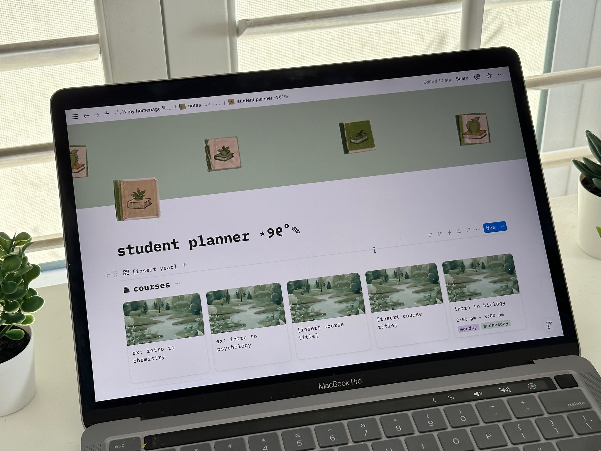 student planner - sage green themed notion template